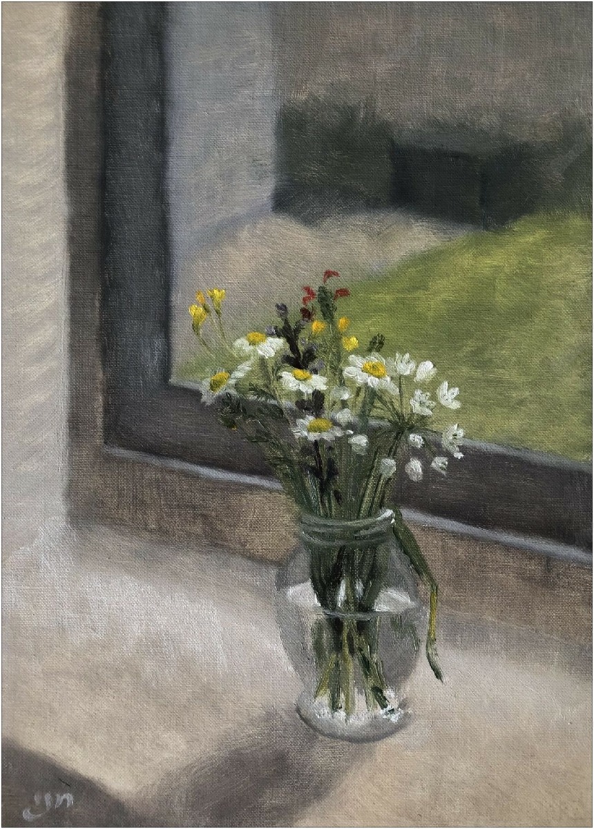 / Chani Cohen Zada, Wildflowers on Windowsill, mixed media